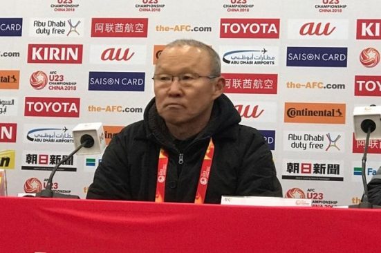 Huấn luyện viên Park Hang-seo bước vào phòng họp báo trong tiếng vỗ tay lớn của các phóng viên Việt Nam và quốc tế. Dù vậy, ông vẫn không giấu được khuôn mặt buồn bã vì để tuột mất chức vô địch.