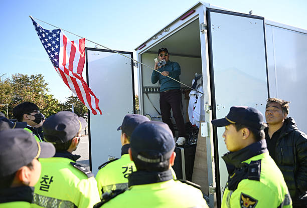 Ngày 30/10, “Hội nghị Trump-Tập” được tổ chức tại Căn cứ Không quân Gimhae ở Busan. Đông đảo người dân Hàn Quốc đã tập trung gần Sân bay Quốc tế Gimhae để phản đối sự bạo ngược của ĐCSTQ. Một người đàn ông Hàn Quốc lái xe tải, đứng trên thùng xe vẫy cờ Mỹ, dùng loa hét lớn: “Độc tài Tập Cận Bình cút đi, cút về nước của ngươi!”