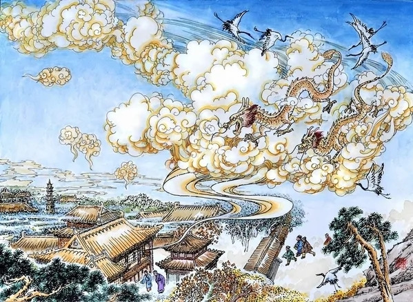 Hai con rồng nô đùa khi Thái Tông giáng sinh, lấy phương thức thần kỳ, an lành, đặc thù để tỏ rõ với thiên hạ rằng có kỳ nhân giáng sinh. Quyển 2 “Bản kỷ đệ nhị” trong “Tân Đường Thư” có ghi chép: