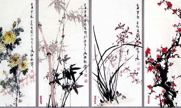 Khi treo bốn bức tranh này trên vách, dường như thời gian vĩnh hằng và biểu tượng luân chuyển của thời không cũng được đưa vào gia môn, để gia chủ hay khách quý có dịp chiêm nghiệm về cuộc đời, hướng tới sự tao nhã, xa lánh danh vọng.