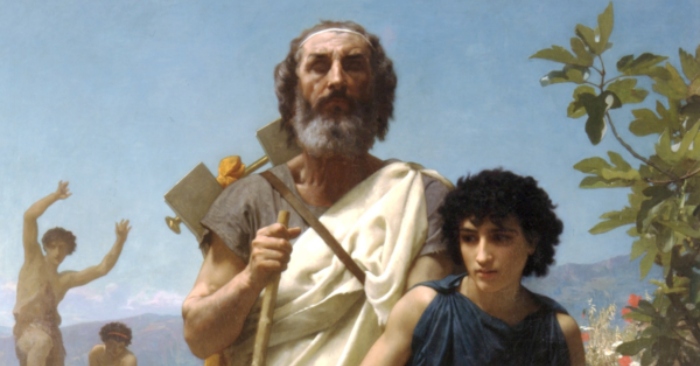Tác phẩm “Homer and His Guide” của họa sĩ hàn lâm nổi tiếng người Pháp William-Adolphe Bouguereau (1825-1905) được sáng tác vào năm 1874, đương thời, hội họa cổ điển đang phát sinh xung đột với phong cách nghệ thuật mới, mà sau này gọi là trường phái Ấn tượng (impressionism). Một số học giả cho rằng Bouguereau vẽ tác phẩm này đặc biệt để chương hiển thế mạnh của hội họa truyền thống, đồng thời cũng có ý hưởng ứng vận động nghệ thuật mới.